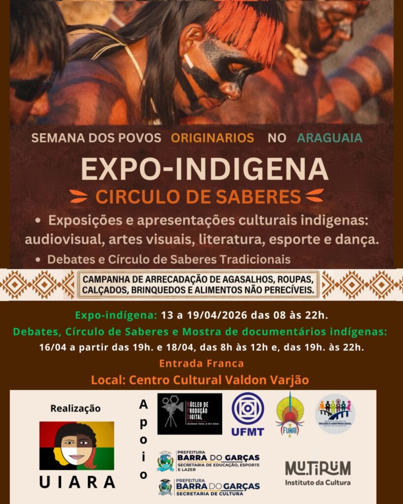 A região do Araguaia recebe, entre os dias 13 e 19 de abril de 2026, a Semana dos Povos Originários no Araguaia, iniciativa promovida pela União pela Igualdade Racial do Araguaia (UIARA). Com programação gratuita e aberta ao público, o evento acontece das 8h às 22h no Centro Cultural Valdon Varjão, reunindo atividades culturais, educativas e ações de solidariedade.