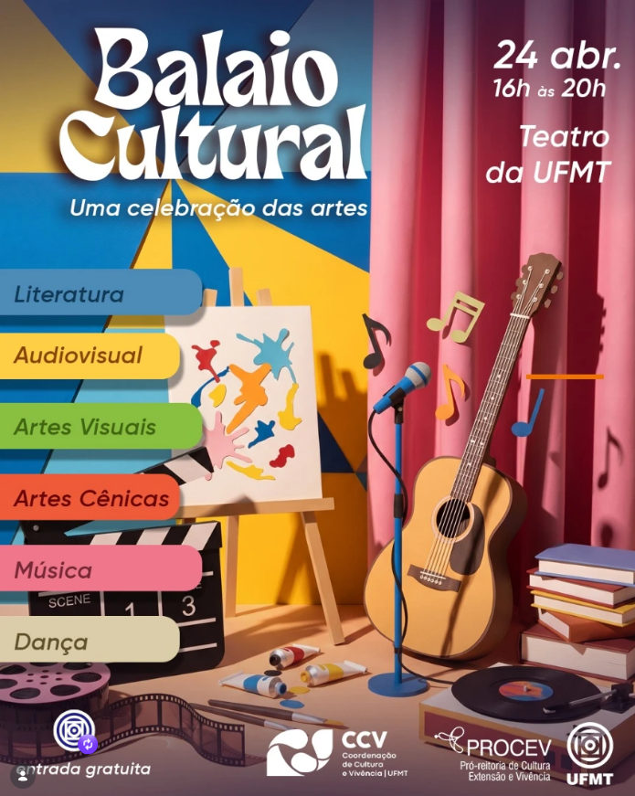 A diversidade artística e cultural ganha destaque nesta sexta-feira (24) com a realização do Balaio Cultural, evento que promete reunir diferentes expressões em um só espaço no Teatro Universitário da Universidade Federal de Mato Grosso, em Cuiabá. A programação acontece das 16h às 20h e é aberta ao público.